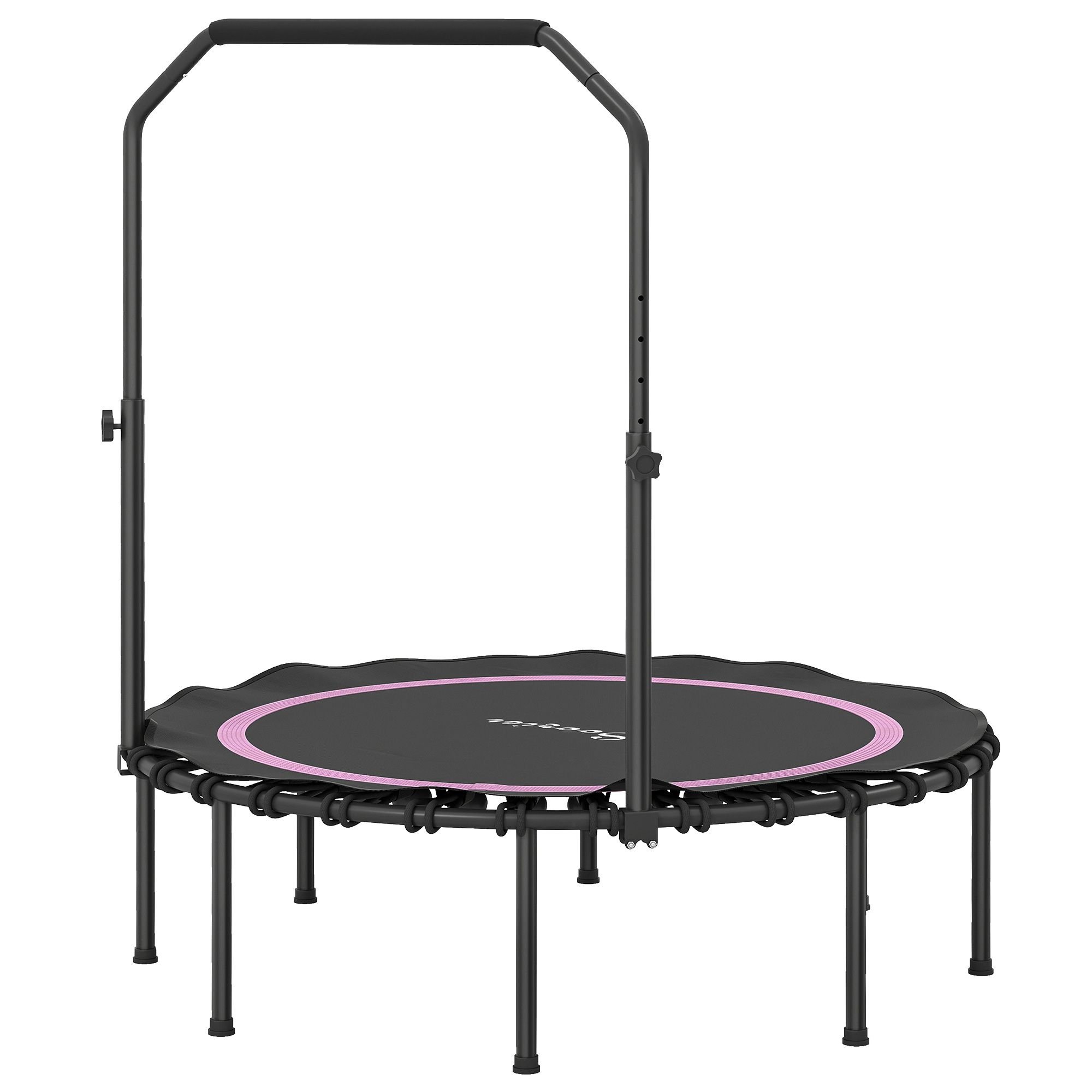 1.- Adjustable Handle: This rebounder trampoline features a 5-level height-adjustable T-shaped handle (42.9""-50.8"") with anti-slip foam padding for secure grip and added balance. Great for family workouts, making fitness a fun habit for both adults and teens